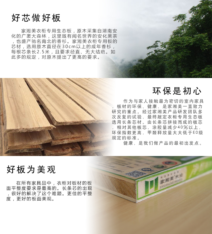 藏于芯,斂于型。家湘美衣柜專用生態(tài)板,我們沒(méi)有追求所謂的一板多用,回歸板材初心,只求簡(jiǎn)簡(jiǎn)單單做衣柜,做好衣柜,做健康靈性的環(huán)保衣柜。
