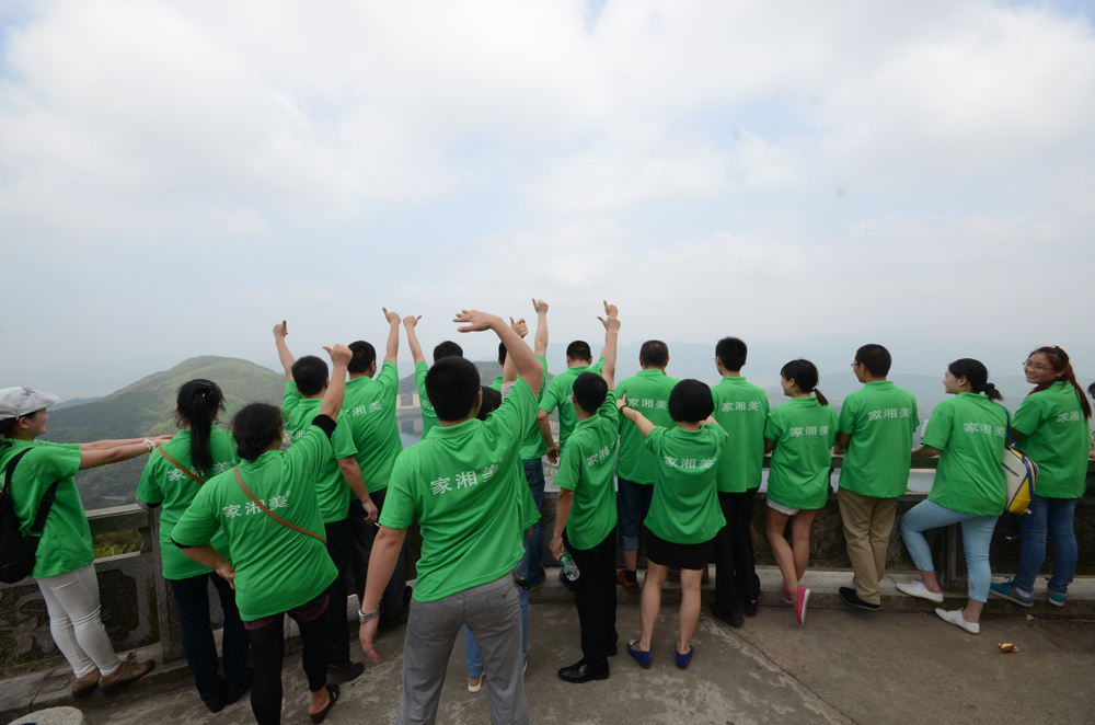 活動的第一個項目是爬山。家湘美全國營銷中心分成“快樂隊”與“開拓隊”,相互比拼看哪個團隊最先到達山頂。看似簡單的活動,卻因為團隊成員的老少兼顧而變得復雜起來。
